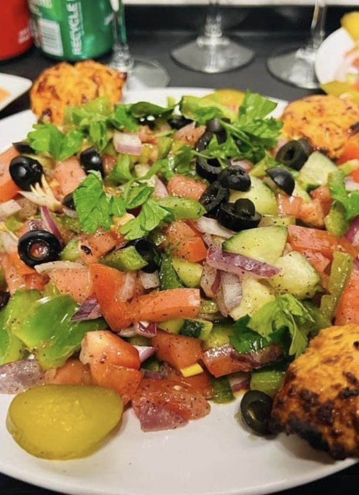 Turkish salad of bulgur wheat, tomatoes, cucumbers, peppers, spring onions and different condiments.